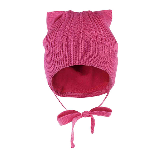 Шапка украшена завязками, которые позволяют надежно фиксировать ее на голове, обеспечивая дополнительную защиту от ветра. Интересное дизайнерское решение с декоративными ушками придает изделию оригинальность и игривый вид.