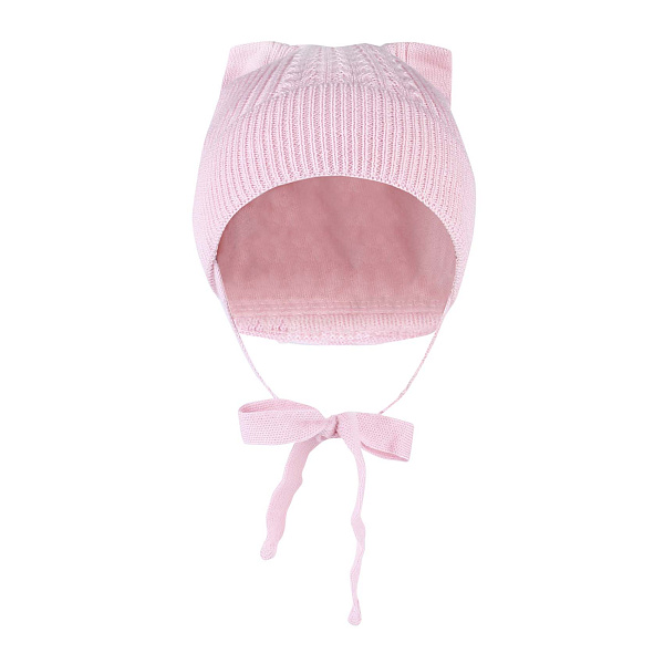 Шапка демисезонная на завязках с ушками розовая