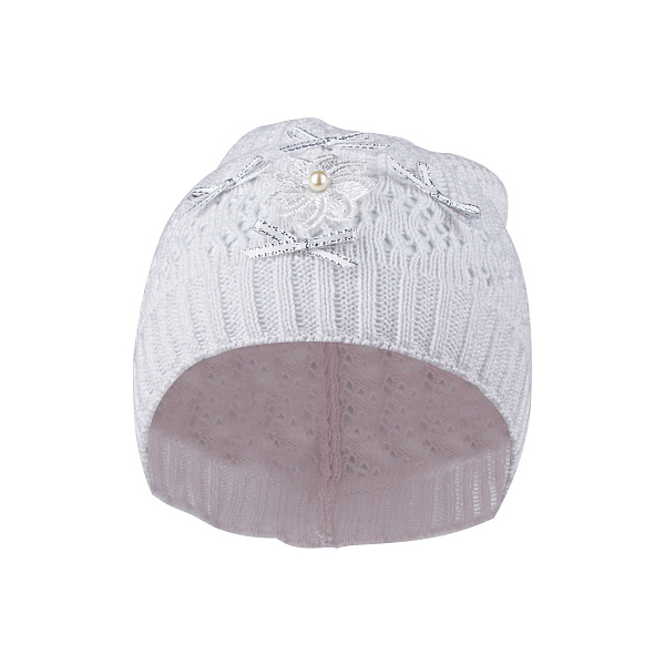 Ажурная белая шапка для девочки. Состав материала – 95% хлопок, 5% эластан. Мягкий материал не вызывает раздражений на детской коже. Эластичная шапка плотно сидит на голове ребенка, не сдавливает ушки и не натирает. Малышу будет комфортно в шапочке. Вязка-резинка по периметру шапки обеспечивает дополнительную фиксацию. Шапочка белого оттенка хорошо впишется в гардероб маленькой девочки. Ажурная вязка, декор из маленьких бантиков и бусин создают трогательный девичий образ. Шапка подойдет для летних прогулок в прохладную погоду или станет красивым дополнением к праздничному наряду.