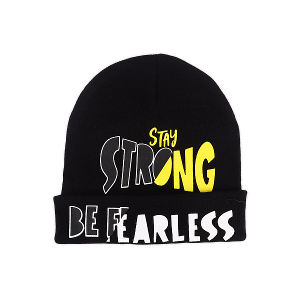 Демисезонная шапка для мальчика сшита из синтетического акрила (100% ПАН), напоминающего по виду и фактуре материал из натуральной шерсти. Прочная и мягкая ткань не накапливает статическое электричество, практически не мнется и хорошо сохраняет тепло в холодную погоду. Шапка по всему периметру плотно прилегает к голове и не спадает во время активных игр и бега. Теплая шапка защитит весной и осенью голову и уши маленького мальчика от ветра, дождя и холода. Классическая модель с отворотом практичного и брутального черного цвета, украшенная надписями на английском языке, смотрится очень стильно.