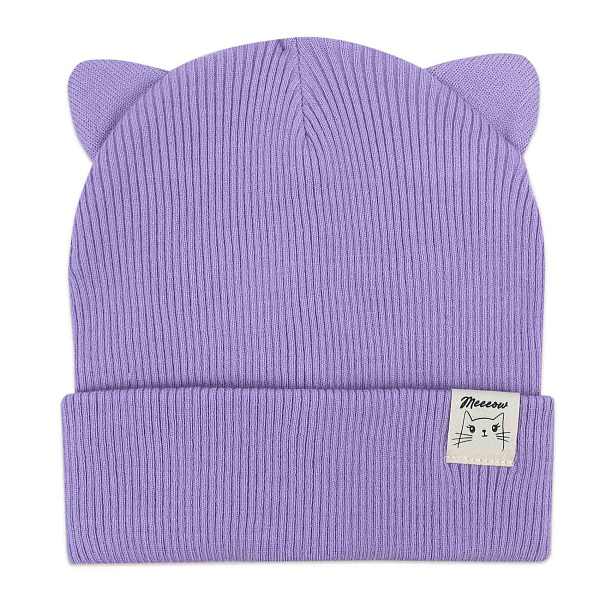 Демисезонная шапка выполнена в нежном сиреневом цвете. Модель имеет классическую форму с забавными декоративными ушками. Шапка хорошо закрывает уши, затылок и лоб. Она подходит для прогулок в прохладную весеннюю и осеннюю погоду.