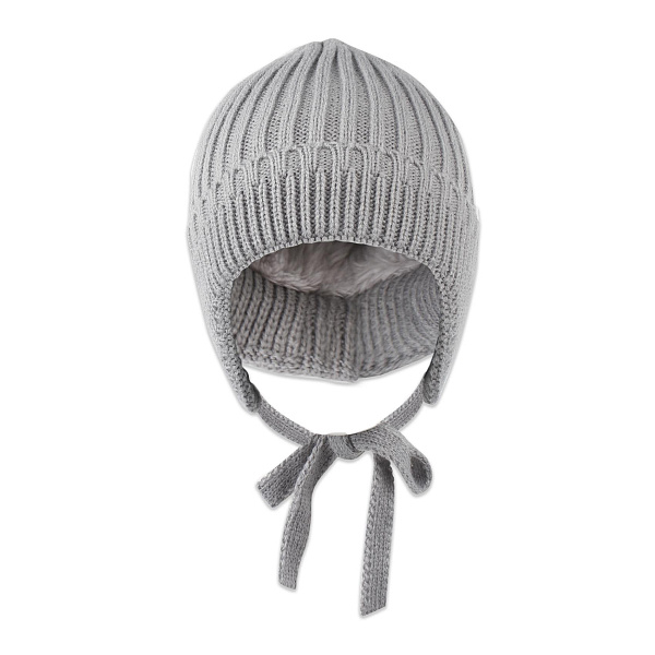 Шапка Lanson Kids зимняя в рубчик с завязками и без завязок серая