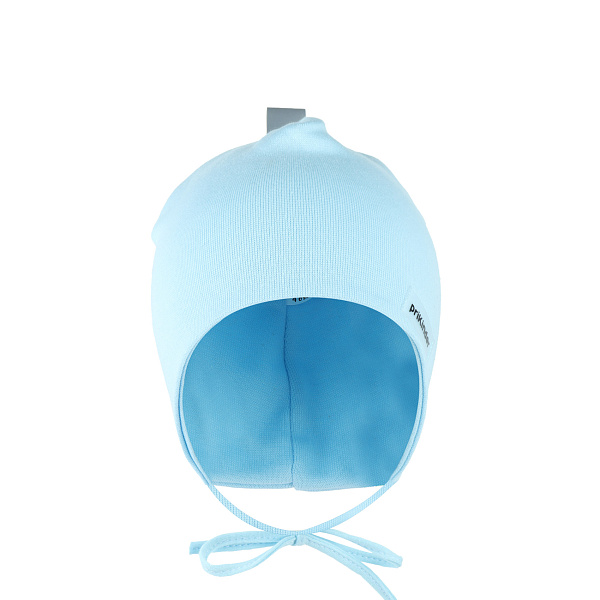 Шапка Prikinder на завязках с серой петелькой однотонная голубая