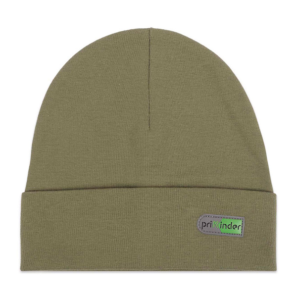 Легкая трикотажная шапка не натирает кожу, комфортная в носке, ее удобно надевать, при этом она не нуждается в особом уходе. Цвет шапки – зеленый, на отвороте имеется декоративная нашивка с логотипом.