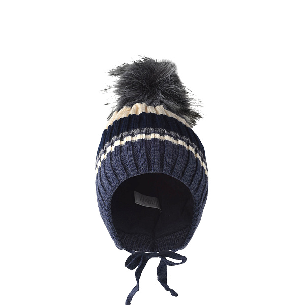 Шапка Prikinder с меховым помпоном и светлыми вставками темно-синяя