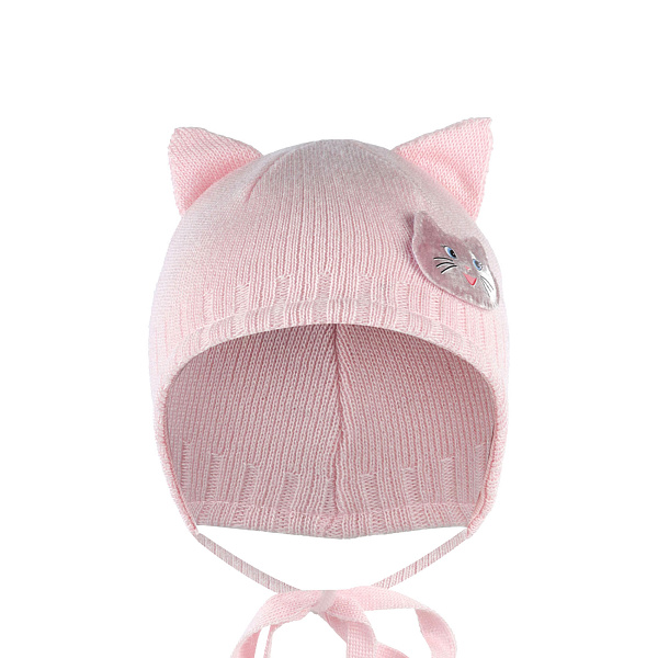 Удобная шапка с забавными ушками органично дополнит образ маленькой девочки, защитит ее от холодного ветра. Модель создана с учетом анатомических особенностей ребенка, в полной мере отвечает всем его потребностям. Оригинальный крой обеспечит комфортную посадку. Для фиксации головного убора предусмотрены широкие вязки. Украшением служит аппликация в виде кошачьей мордочки. Она поднимет малышке настроение.
