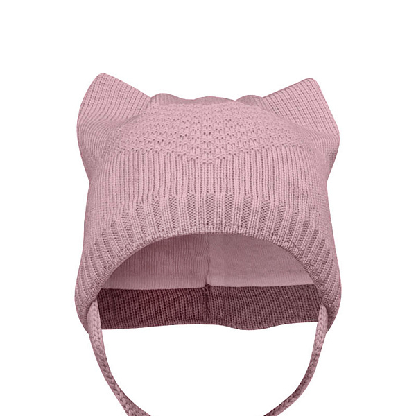 Шапка PriKinder с ушками и завязками цвета пыльная роза