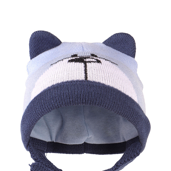 Демисезонная шапка предназначена для ребенка ясельного возраста. Она оформлена в универсальной цветовой гамме, повторяющей все оттенки джинсовой одежды. Модель классической формы украшена изображением мордочки животного, выступающими ушками. Она имеет удобный отворот, фигурные элементы и вязки. Изделие хорошо сидит на голове, не смещается при активных движениях. Верх изготовлен из 100% хлопка. В составе подкладки присутствует добавка из 5% лайкры. Материал устойчив к деформации и износу, отлично пропускает воздух, приятно прилегает к коже.