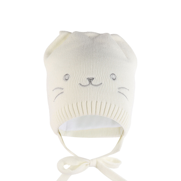 Шапка PriKinder с вышивкой кошачья мордочка молочная