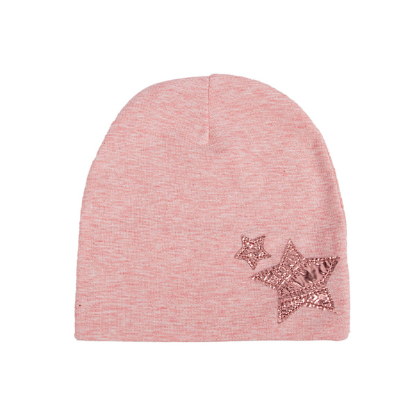Комфортным и практичным приобретением для маленького ребенка является шапочка из мягкого трикотажа. Модель ориентирована на прохладную и ветреную погоду. Отсутствие вязок делает использование изделия комфортным. Шапка украшена сверкающими звездочками, которые придутся по душе каждому малышу.