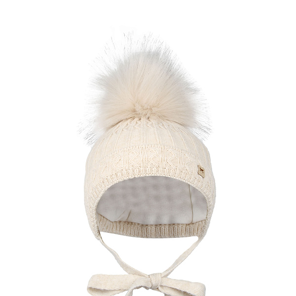 Разнообразьте зимний гардероб малышки утепленной шапкой бежевого цвета. Верх головного убора пошит из смеси шерсти и акрила, материалы хорошо сохраняют тепло и приятно прилегают к телу. Подкладка, изготовленная из натурального хлопка, мягкая на ощупь и не пропускает холодный воздух. Утеплитель из синтепона. Макушка украшена пушистым помпоном в тон шапке. Область ушей закрыта и дополнена длинными завязками. Эластичный вязаный манжет по низу шапки добавляет изящность в образ головного убора. Завершает дизайн кожаная нашивка с медвежонком. Пушистая шапка бежевого цвета защитит голову ребенка от холодного ветра и органично сочетается со светлыми и темными вещами.