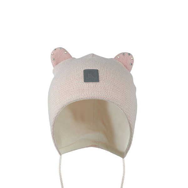Шапка с ушками в полоску со стразами розовая