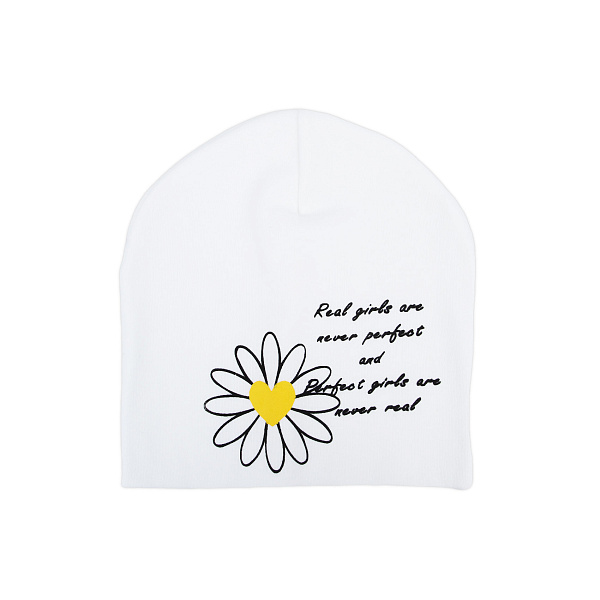 Шапка трикотажная принт ромашка белая