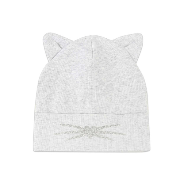 Двойная шапка без вязок предназначена для маленькой девочки. Она привлекает внимание забавным рисунком и выступающими вверх ушками. Модель органично впишется в сезонный гардероб ребенка, обеспечит комфорт во время прогулки.