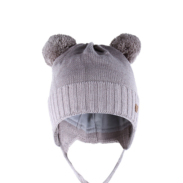 Шапка утепленная с двумя помпонами с аппликацией мишка серая