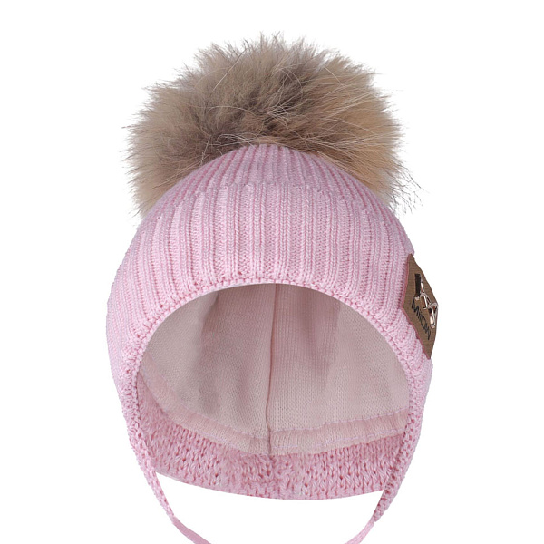 Шапка утепленная с меховым помпоном в нежно-розовом цвете