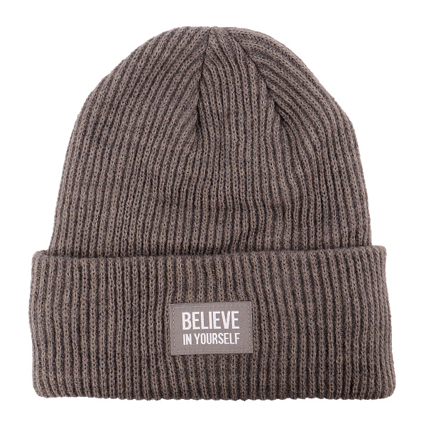 Зимняя шапка для мальчика выполнена в универсальном сером цвете, что делает ее подходящей к любому зимнему гардеробу. Шапка украшена нашивкой с надписью «BELIEVE IN YOURSELF». Этот элемент добавляет индивидуальности и стиля.