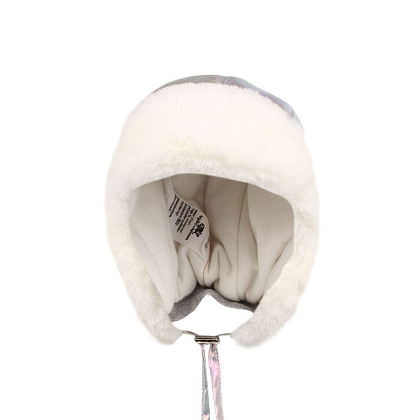 Чтобы игры на свежем воздухе прошли веселее, а эмоции от прогулки стали ярче, дополните зимний гардероб ребенка меховой шапкой-ушанкой. Головной убор пошит из прочного полиэстера. Верх и утеплитель бережно защитят ребенка от перепадов температуры и не пропустят внутрь холодный воздух. Подкладка из натурального хлопка мягкая и приятная на ощупь, она хорошо сохраняет тепло и дарит комфорт в носке. Область ушей и перед шапки украшены пушистым мехом и дополнены длинными завязками с фиксатором. Со стороны затылка имеется резинка, с помощью которой головной убор надевается на любой размер головы. Голографическая ткань с принтом единорога завершают дизайн шапки.