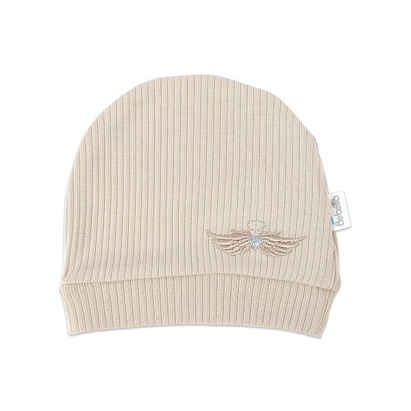 Шапочка Bebetto с вышивкой сердце с крылышками бежевая
