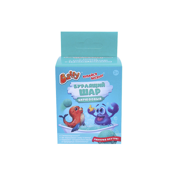 Шар Baffy бурлящий для ванны бирюзовый с сюрпризом 70г c 3лет