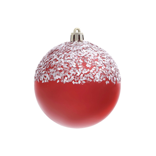 Новогодний праздник трудно представить без елки, украшенной разноцветными шарами. В комплекте елочных украшений будет отлично смотреться новогодний шар диаметром 8см, создающий в комплекте с другими украшениями неповторимую атмосферу любимого праздника. Шар окрашен в насыщенный красный цвет, а в верхней его полусфере блестящая белая присыпка, имитирующая новогодний снежок. Такие шары хорошо смотрятся в сочетании с другими игрушками, светящимися гирляндами, серебряным «дождем» и бусами. Шары из пластика устойчивы к внешнему воздействию, их трудно разбить или повредить. Украшать этой игрушкой елку – одно удовольствие.