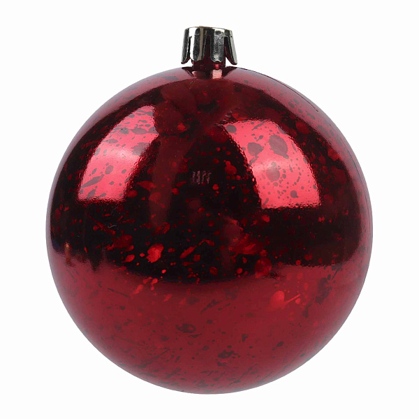 Елочный шар «Винтаж красный» имеет классическую круглую форму. Диаметр шара составляет 8 сантиметров. Поверхность украшена рельефным винтажным узором. Глубокий красный цвет создает праздничное настроение. Шар дополнен надежным креплением для подвешивания. Это украшение становится важным элементом новогоднего декора.