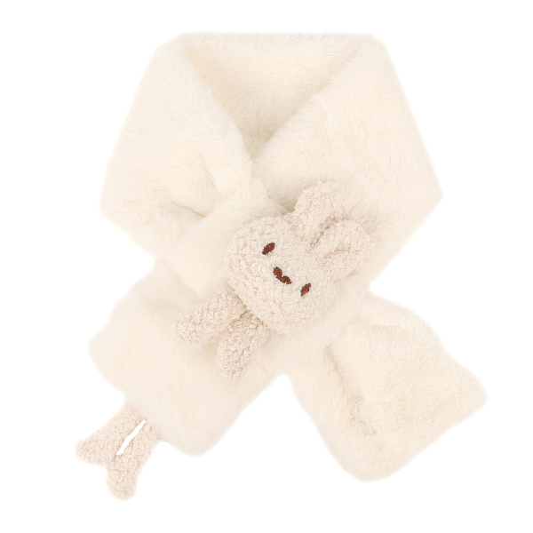 Зимний плюшевый шарф с зайчиком станет милым и теплым аксессуаром для холодного времени года. Нежный кремовый цвет добавляет наряду уюта. Состав ткани – 100% полиэстер, что делает изделие мягким и устойчивым к износу. Основная особенность этого шарфа – оригинальный дизайн с мягкой игрушкой в виде зайчика, которая служит декоративным элементом.