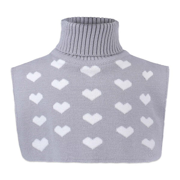 Высокий воротник плотно прилегает к шее, защищает шею ребенка от холода и ветра. Приятный серый цвет и милый принт в виде белых сердечек хорошо сочетается с гардеробом девочки от 3 до 9 лет.