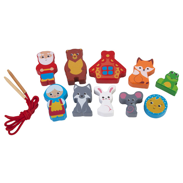 Шнуровка-бусы Mapacha Теремок и колобок деревянные 10дет