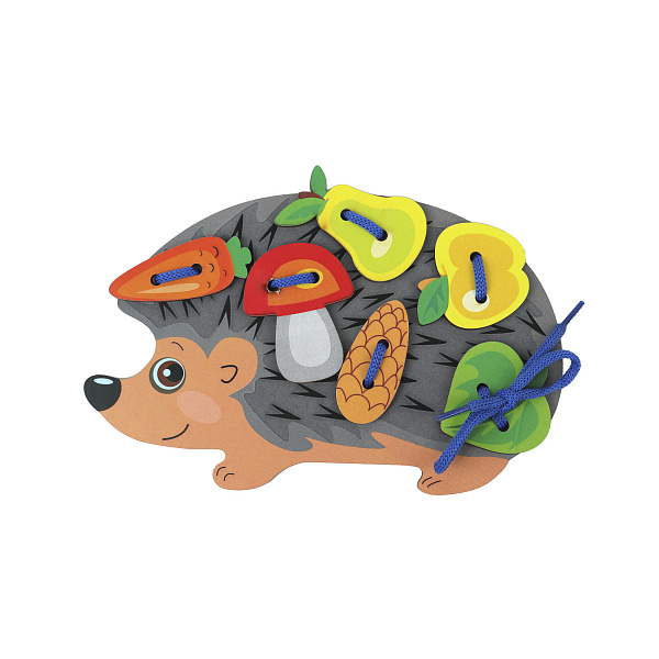 Игрушка со шнуровкой «Ежик» – это развивающая игра, с помощью которой малыш разовьет фантазию и воображение. Покажите ребенку, каким образом необходимо шнуровать детали с 2-мя и 4-мя отверстиями, и он сможет присоединить урожай ежика в виде красочных грибов, овощей и фруктов с помощью шнурков, которые предложены в комплекте. Деревянная шнуровка развивает моторику рук, учит новым цветам и формам, тренирует внимательность и логику. В комплекте: 6 элементов, фигурка ежика и шнуровка. Детали изготовлены из дерева. Рекомендовано для детей старше 3 лет.