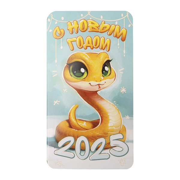 Новогодняя открытка «Желтая змейка» с молочным шоколадом — это оригинальный способ поздравить с наступающим праздником. На яркой лицевой стороне изображена жизнерадостная змейка, окруженная снежинками. Теплые оттенки желтого гармонично сочетаются с фоном, создавая праздничное настроение. Внутри открытки прячется милое пожелание и небольшая молочная шоколадка.