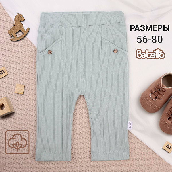 Шорты Bebetto с эластичным поясом в рубчик нежно-зеленые