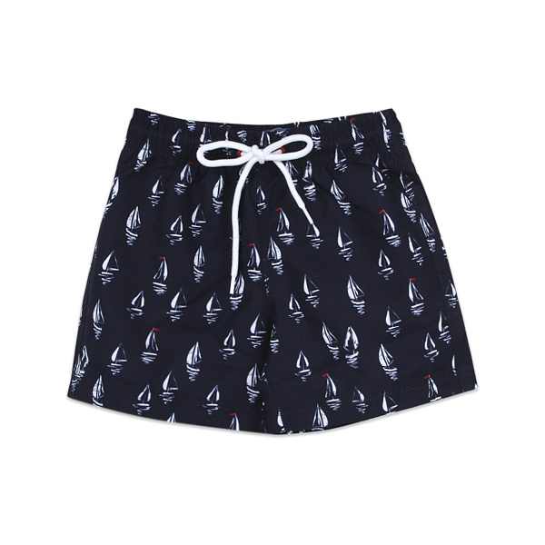 Купальные шорты предназначены для мальчика дошкольного возраста. Модель свободного кроя снабжена широким поясом с резинкой и регулировочным шнурком. Такое решение гарантирует комфортную посадку, позволяет отрегулировать объем по талии. Плоские соединительные швы не вызовут дискомфорта.