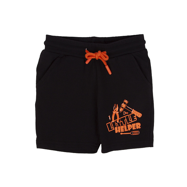 Детские шорты предназначены для повседневного применения, ориентированы на мальчиков ясельного возраста. Практичный черный фон дополнен декором сочного оранжевого цвета. Модель имеет свободный крой, который не сковывает движения ребенка в процессе игр. Широкий пояс с эластичной резинкой обеспечит надежную фиксацию и не давит на животик. Для пошива использован плотный трикотаж. В его составе использовано 95% натурального хлопка и 5% эластана. Такой материал не препятствует естественной вентиляции, не растягивается и не содержит вредных химических веществ. Из гигиенических соображений обязательна предварительная стирка.