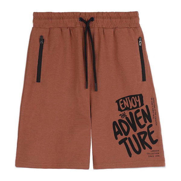 Удобные шорты станут самым востребованным элементом летнего гардероба мальчика. Они обеспечат ребенку комфорт и свободу движений на прогулке, в процессе активных игр и занятий спортом. Модель простого кроя с парой карманов на молнии декорирована контрастной графической надписью. Широкий пояс с резинкой дополнен фиксирующим шнурком, надежно удерживает изделие, не давит на живот.