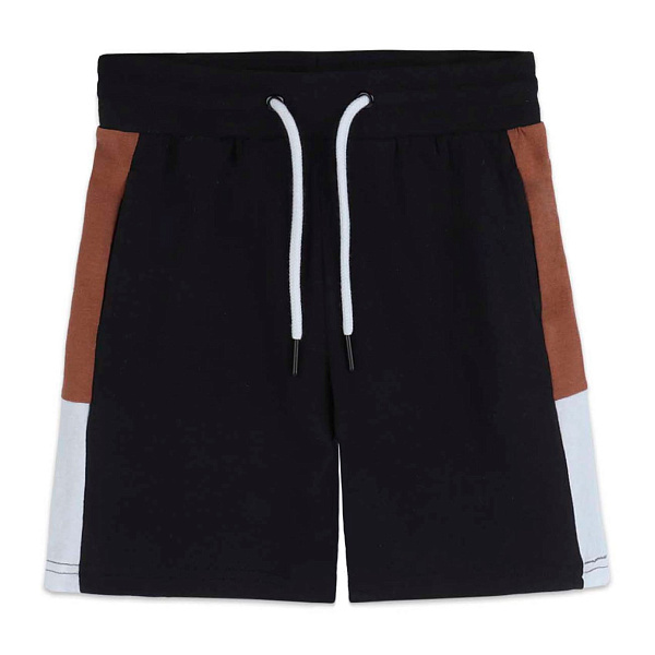 Свободные шорты с разноцветными вставками по бокам послужат базовым элементом сезонного гардероба любого мальчика. Модель отличается высокой посадкой и широким поясом с резинкой и фиксирующим шнурком. Такое решение гарантирует комфорт во время активных игр и спокойных прогулок. Изделие не смещается, не сковывает движения, не отвлекает ребенка от общения с друзьями и исследования окружающего мира.