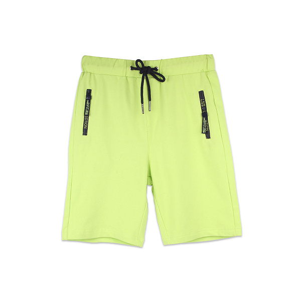 Ярко-зеленые шорты органично дополнят пляжный наряд или спортивную форму. Мягкая на ощупь ткань пошита из натурального хлопка – материала, который хорошо пропускает воздух и приятно прилегает к телу. Небольшая добавка эластана повышает упругость ткани и ее тянущие свойства. Крой изделия свободный и не сковывает движения. Пояс дополнен эластичной резинкой с длинными завязками. Боковые карманы на застежке-молнии завершают дизайн одежды. Ярко-зеленый цвет понравится подрастающему моднику и станет чудесным дополнением к спортивной форме.