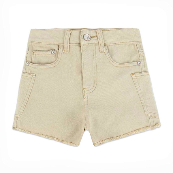 Стильные и удобные шорты станут любимой частью летнего гардероба любой девочки. Модель классического кроя дополнена по бокам накладными карманами, оформлена в нейтральной цветовой гамме. Простая застежка в виде молнии и пуговицы не вызовет затруднений в процессе переодевания. Высокая посадка служит залогом комфорта при спокойных прогулках и подвижных играх.