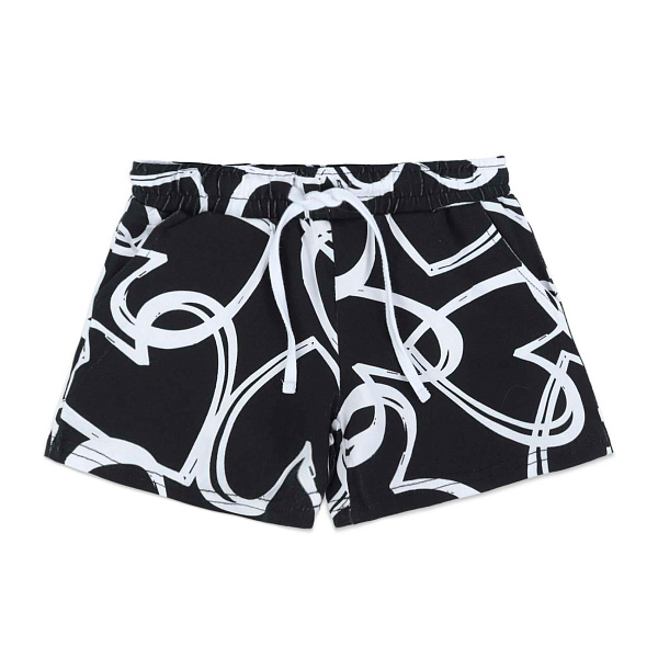Легкие и стильные шорты для девочек на каждый день. Длина изделия выше колена. Модель черного цвета с рисунком в виде больших белых сердец. На поясе пришита удобная широкая резинка. Она не дает штанам сползти, при этом не давит на живот и не доставляет дискомфорт в процессе носки. По бокам предусмотрены два небольших кармана для мелких вещей.