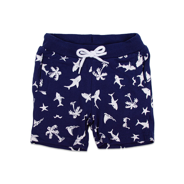 Модель шорт привлечет внимание ребенка контрастным рисунком. Сочетание темно-синего фона и белого рисунка придает практичному изделию нарядный вид. Комфортная посадка достигнута путем увеличения глубины шагового шва. Широкий пояс с резинкой легко корректируется при помощи шнурка, исключая сползание шортов в процессе активных игр. Для пошива использовано прочное хлопковое полотно, устойчивое к износу. Шорты стойко переносят регулярную стирку в ручном и автоматическом режиме, быстро сохнут, не деформируются. Материал не препятствует естественной вентиляции, поэтому комфорт ребенку обеспечен.