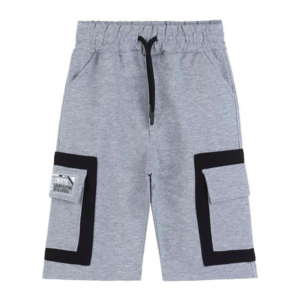 Шорты с объемными накладными карманами и контрастными вставками серые