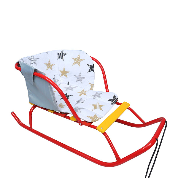 Приятный дизайн с принтом в виде разноцветных звезд придаёт сиденью уютный и стильный вид. Универсальная форма сиденья подходит для большинства моделей санок.