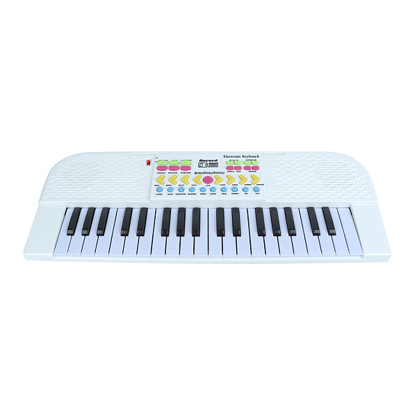 Электросинтезатор на 37 клавиш – это отличная музыкальная игрушка для детей от 3 лет. Синтезатор выполнен из качественного пластика белого цвета. Оснащен яркими цветными кнопками управления, которые делают использование более увлекательным.