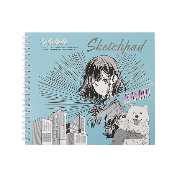 Скетчпад с тематическим дизайном обложки придется по душе юным любителям аниме. Для оформления выбраны спокойные цвета и знакомые детям образы.