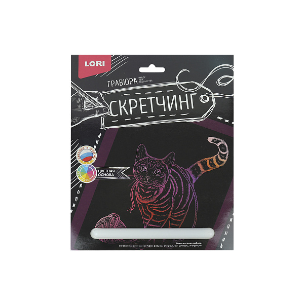 Скетчинг «Животные. Игривая кошка» – это набор для картины, с помощью которого ребенок может своими руками создать красивое изображение в технике гравюры. Процарапывание контуров рисунка штрих за штрихом специальным штихелем развивает точность движений, аккуратность и внимательность. В итоге получится красивая картина с милой кошечкой, которая играет с клубком пряжи. Такую картину можно заправить в рамку, сделанную из обратной стороны упаковки, и повесить на стену в детской комнате.