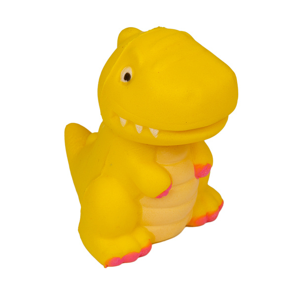 Упругие полиуретан и мягкая пузырчатая пена внутри позволяют делать с игрушкой все, что угодно — мять, сжимать, растягивать, ведь в итоге сквиш все равно примет изначальную форму. Ярко-желтого динозавра с маленькими зубками комфортно держать в ладони за счет компактного размера – так ребенок тренирует мелкую моторику и разминает суставы.