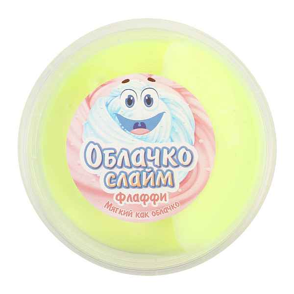 Облачко-слайм «Флаффи» – это мягкий и воздушный материал для игр. Игрушка изготовлена из безопасных компонентов, включая воду, полимер, краситель, ароматизатор, загуститель и консервант. Он подходит для детей старше трех лет. Слайм легко разминается в руках, развивает мелкую моторику и помогает снять эмоциональное напряжение. Масса изделия составляет 400 граммов.