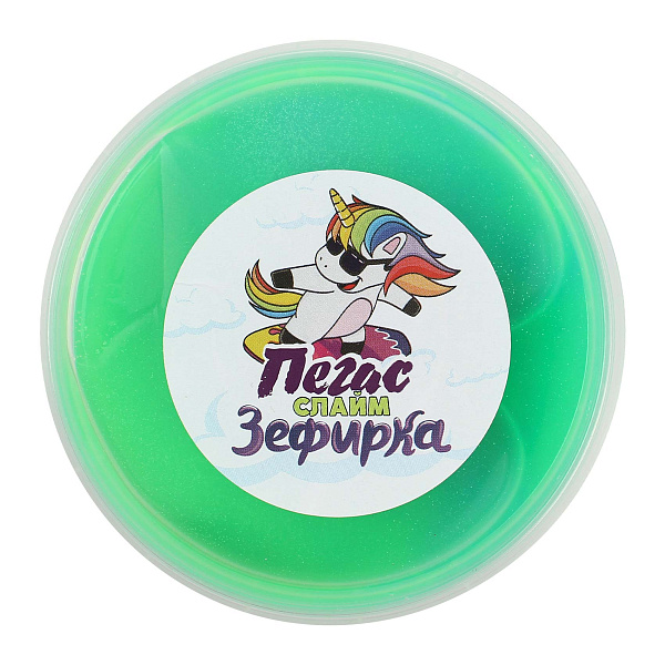 Слайм «Пегас» зефирка зеленого цвета подходит для развлечения и успокоения детей. Игрушка изготовлена из мягкой пластичной массы с добавлением ароматизатора и красителя. Благодаря необычной текстуре и воздушной структуре слайм легко растягивается и мнутся, что помогает снять напряжение и улучшить внимательность. Слайм предназначен для детей старше 3 лет.