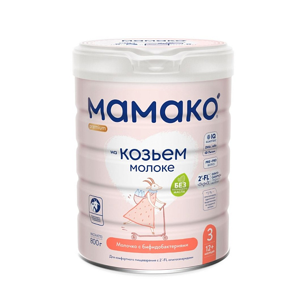 Смесь Мамако Premium 3 на козьем молоке с бифидобактериями 800г с 12мес БЗМЖ