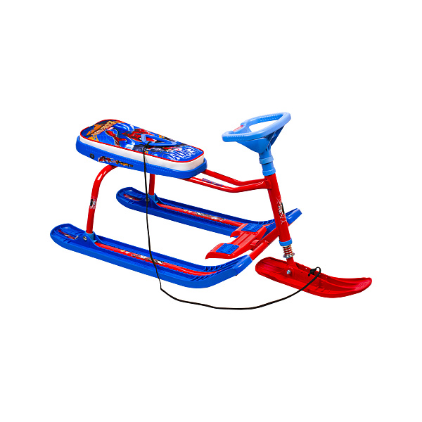 Узнаваемое сочетание синего и красного цветов сразу говорит о том, что за рулем снегоката находится поклонник Человека-паука. Яркое средство для передвижения ребенка зимой станет чудесной альтернативой обычным санкам для детей постарше. Мягкое сиденье с постером фильма вместит даже двоих пассажиров. Подставки для ног обеспечивают комфорт во время езды. Руль также украшен тематическими наклейками и позволяет управлять направляющей. При этом тащить снегокат на веревке будет комфортно благодаря пластмассовой ручке треугольно формы. Рекомендовано для детей школьного возраста.